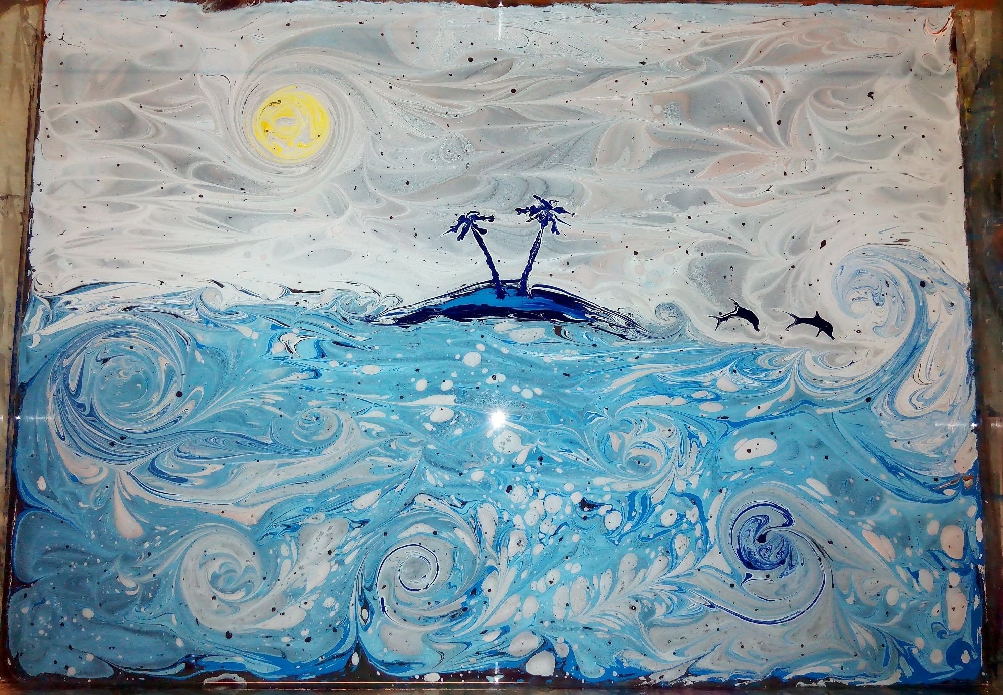 ![Эбру-рисование море]()