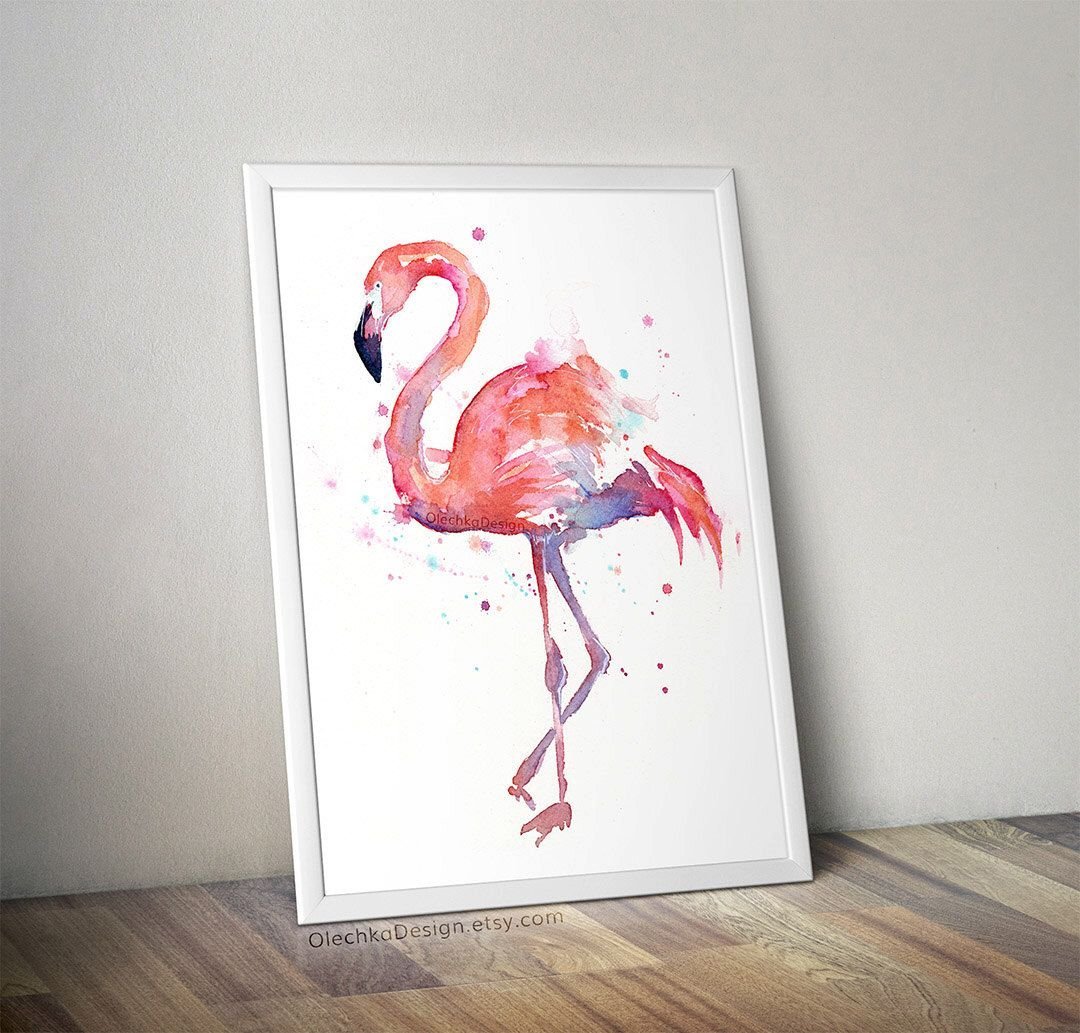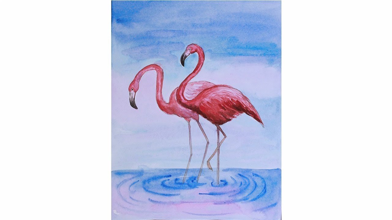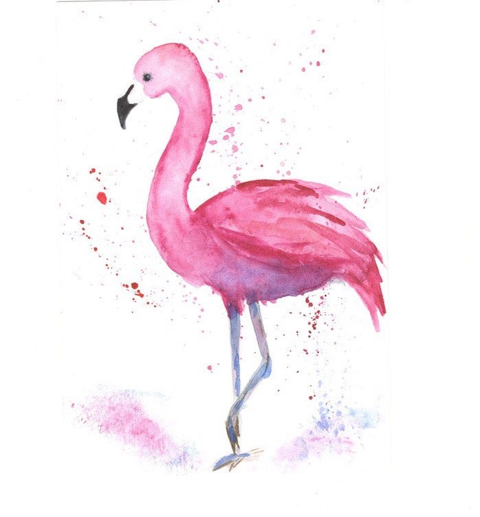 ![Фламинго красками акварелью]()