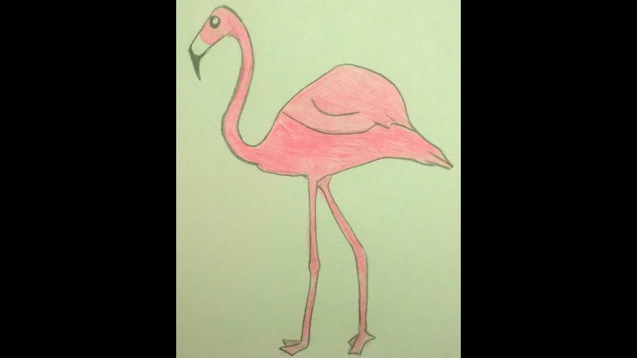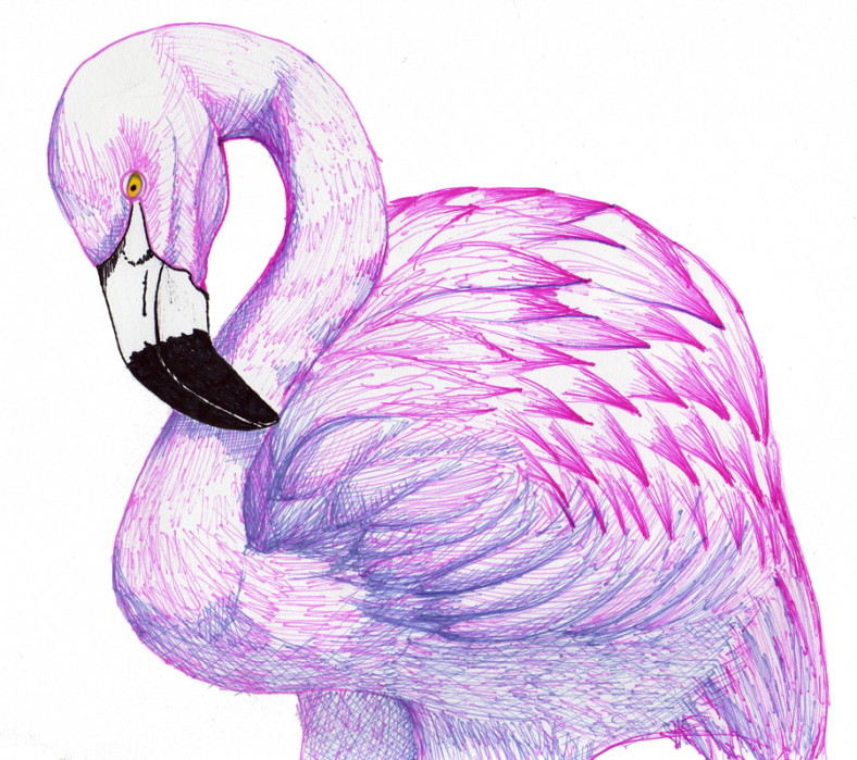 ![Розовый Фламинго рисунок карандашом]()