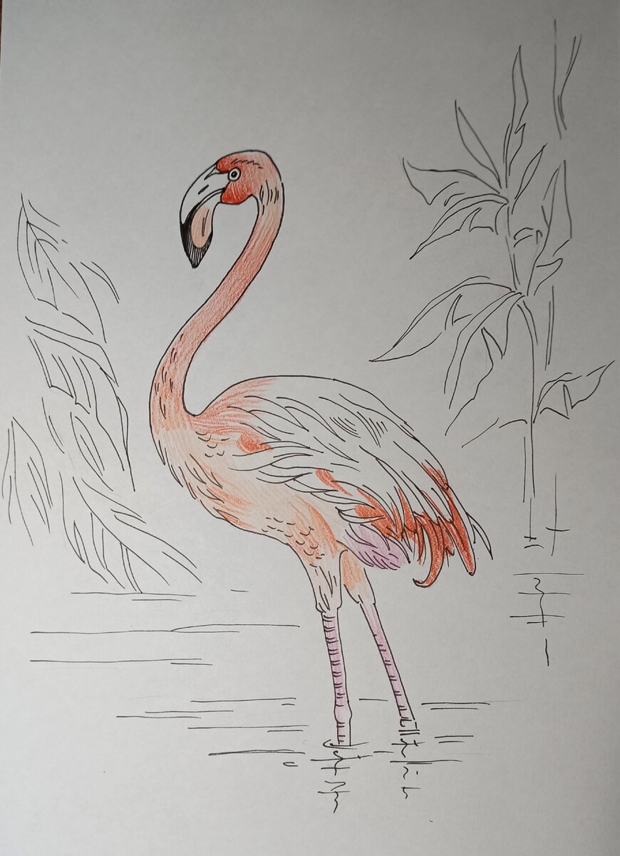 ![Фламинго карандашом]()