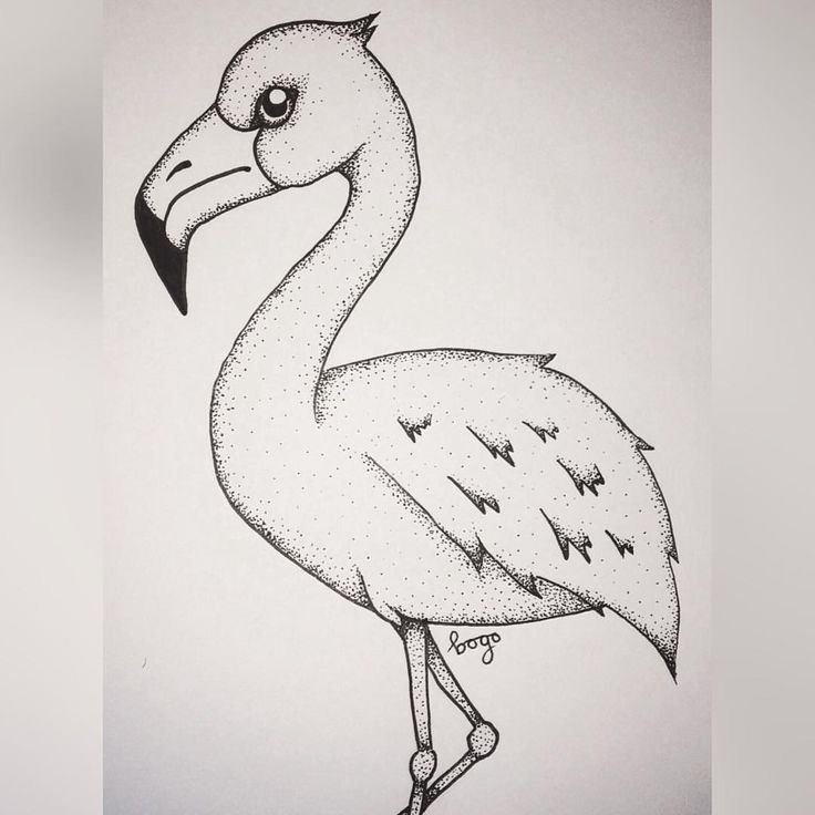 Розовый Фламинго рисунок карандашом