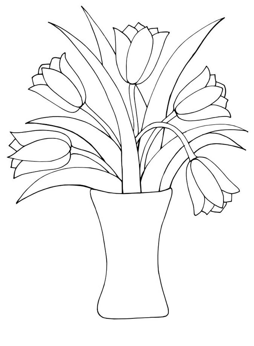 ![Раскраска тюльпаны в вазе]()