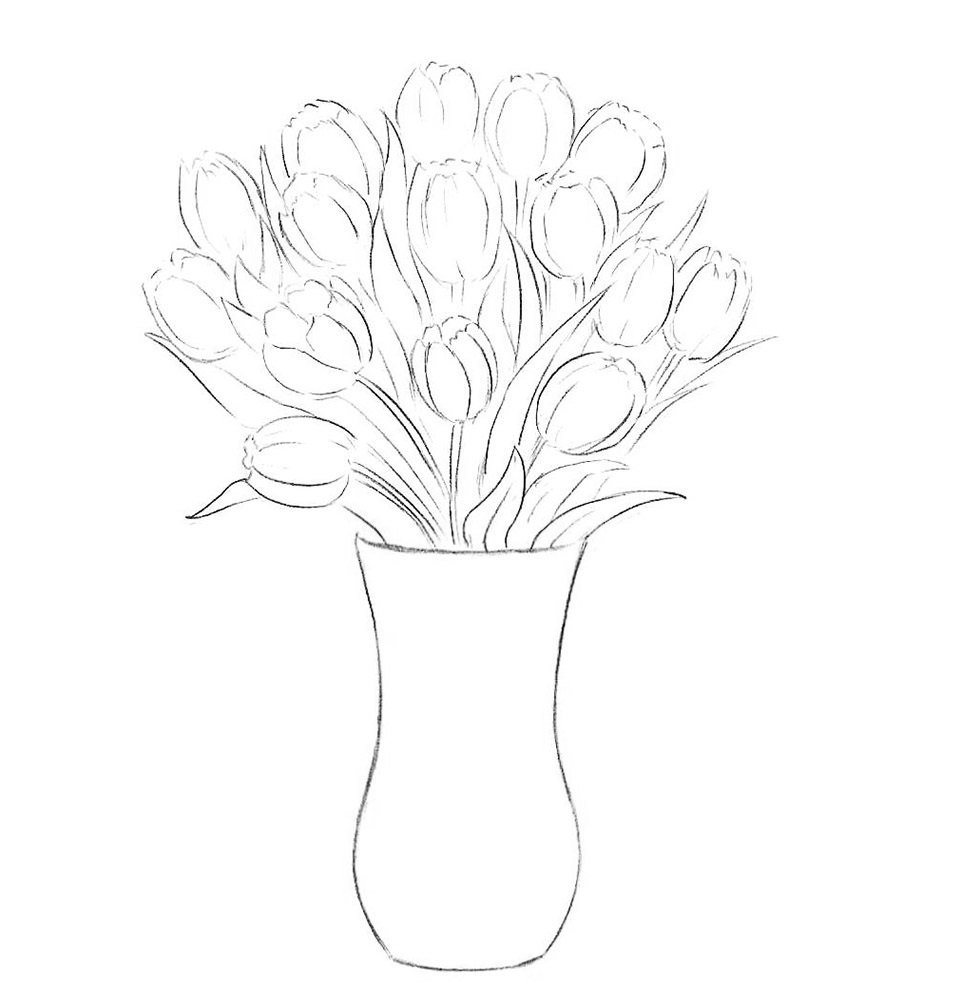 Ваза с цветами для срисовки