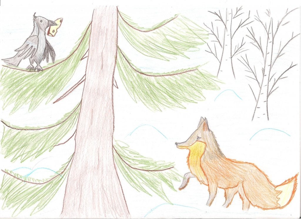 ![Иллюстрации к басне Крылова лиса и ворона]()
