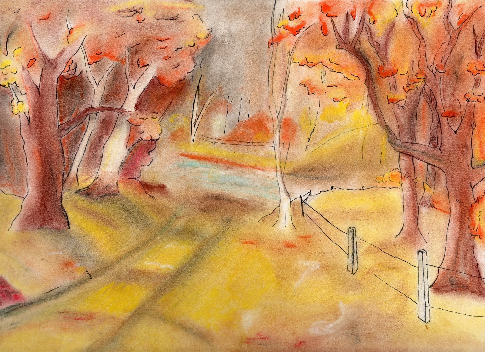 Рисование осеннего пейзажа