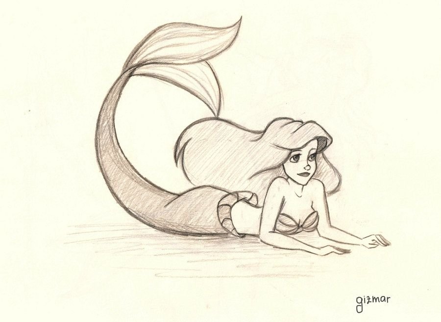 Рисунки карандашом русалки Ариэль