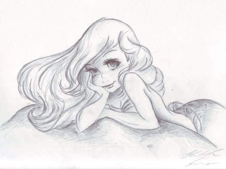 ![Русалочка Ариэль карандашом]()