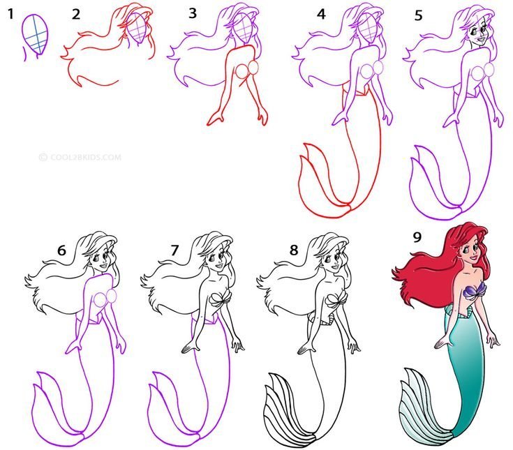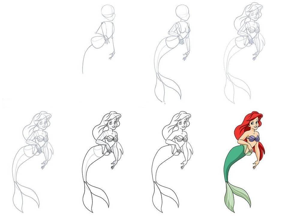 ![Русалочка Ариэль поэтапно]()