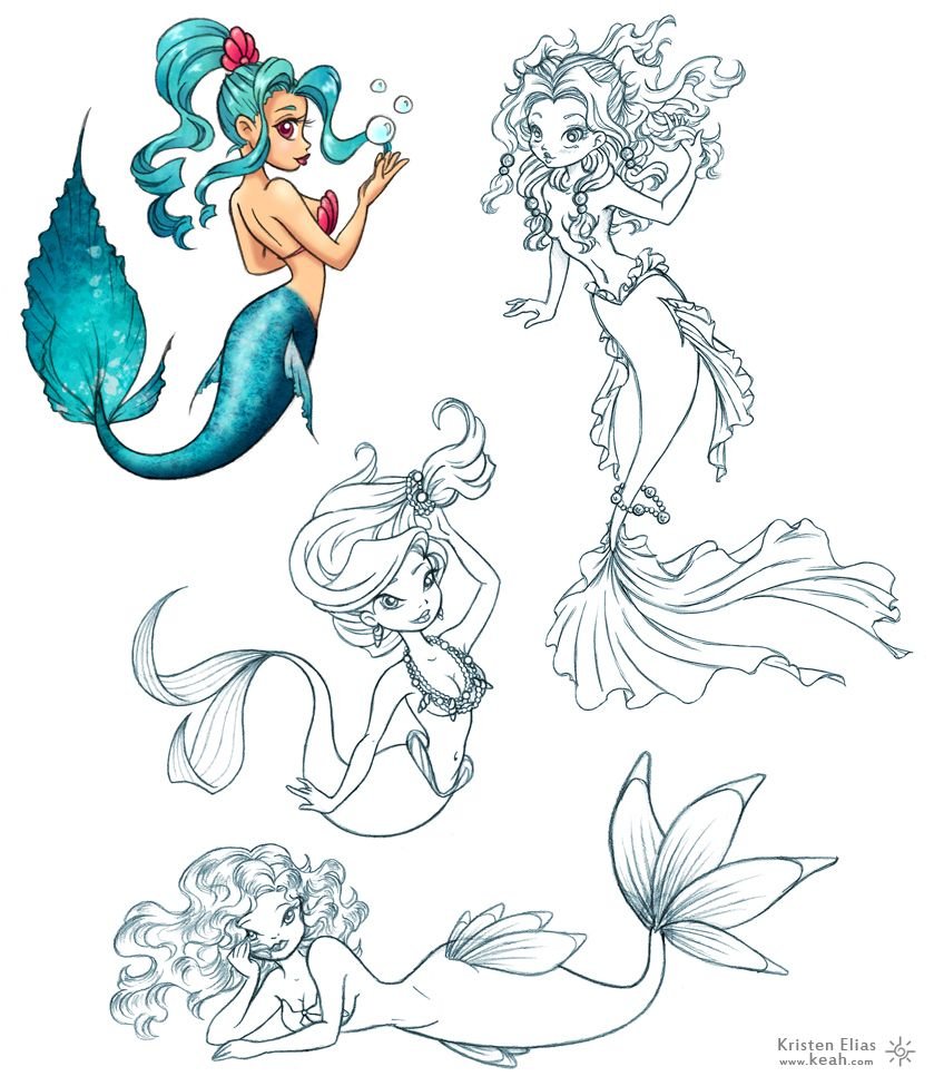 ![Русалка для срисовки]()