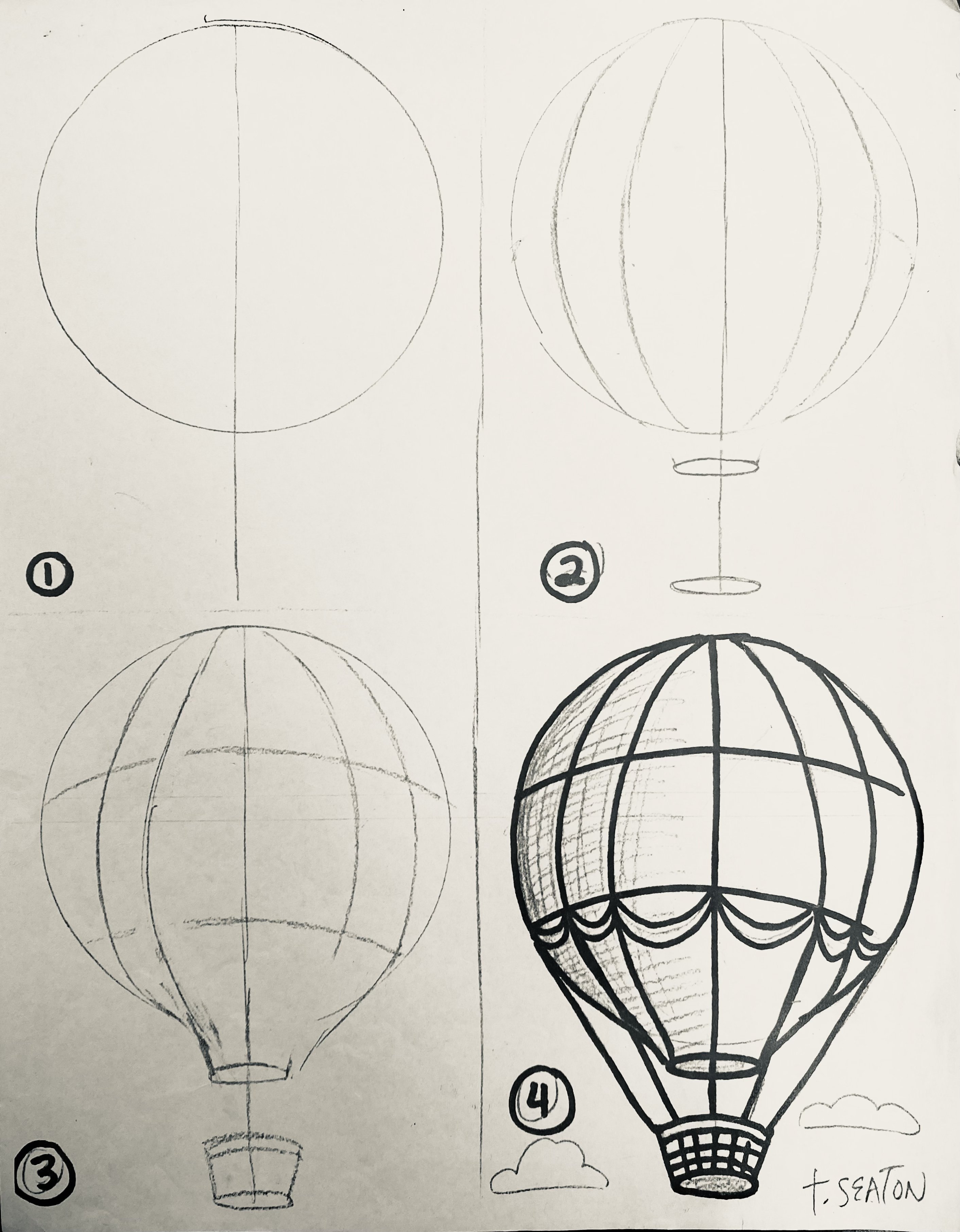 ![Воздушный шар скетч]()
