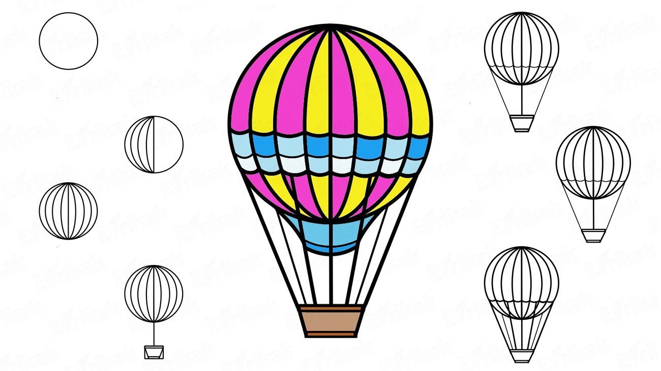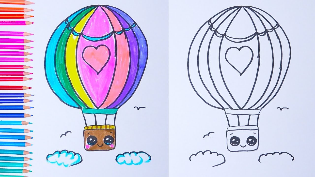 ![Воздушный шар цветными карандашами]()