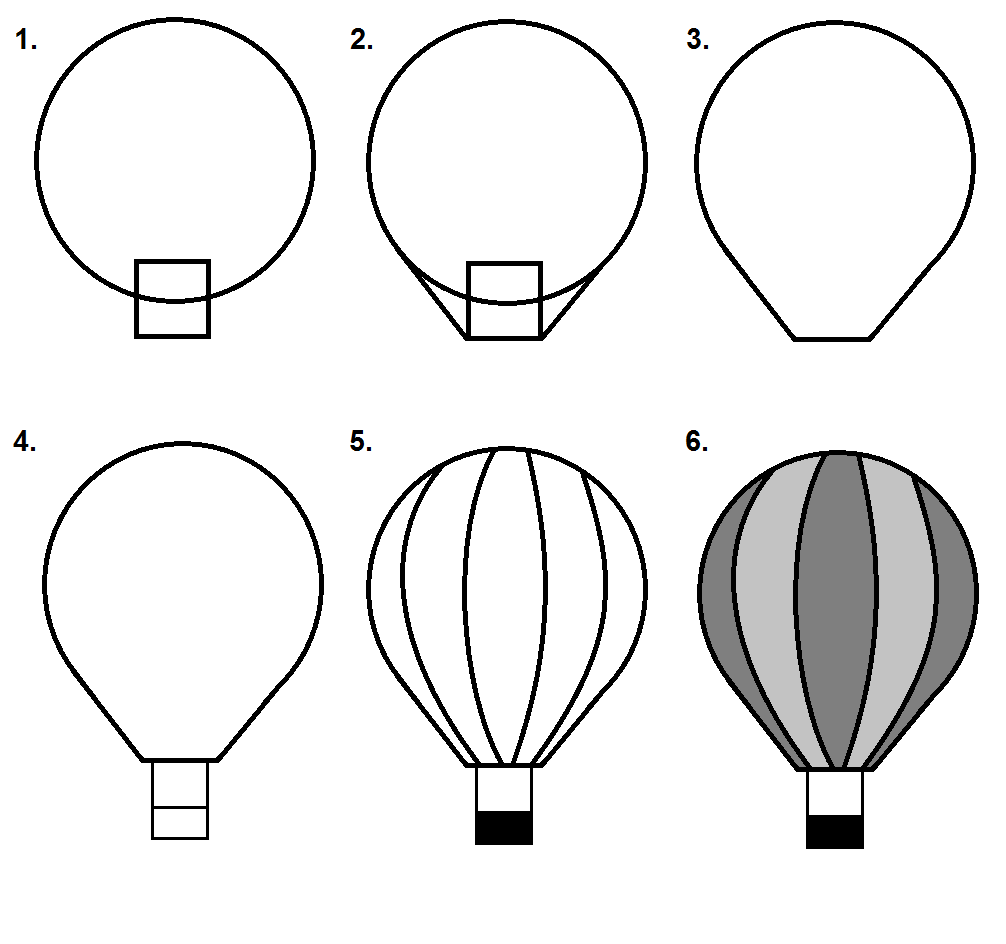 Рисование воздушный шар с корзиной
