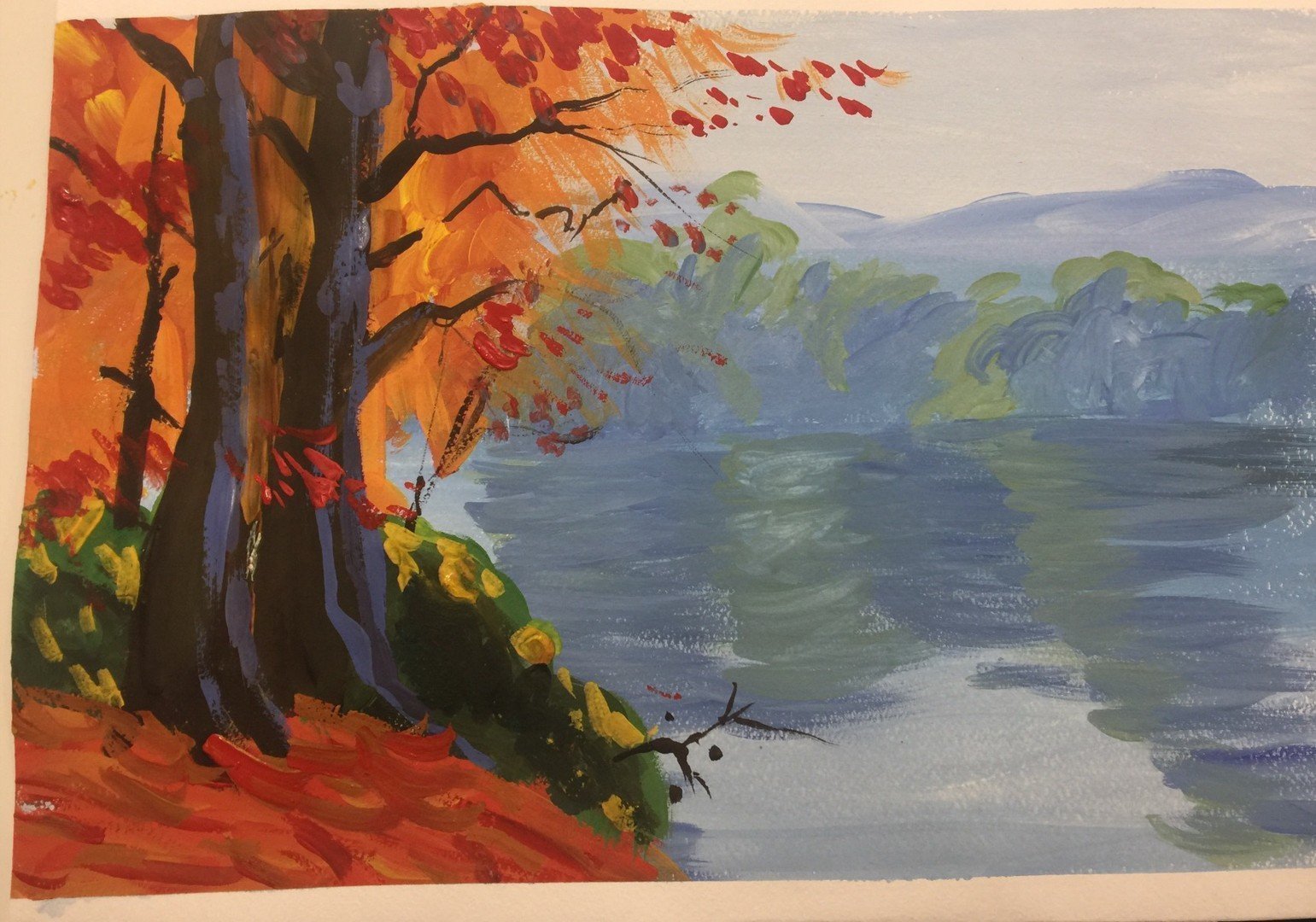 Осенний пейзаж гуашью