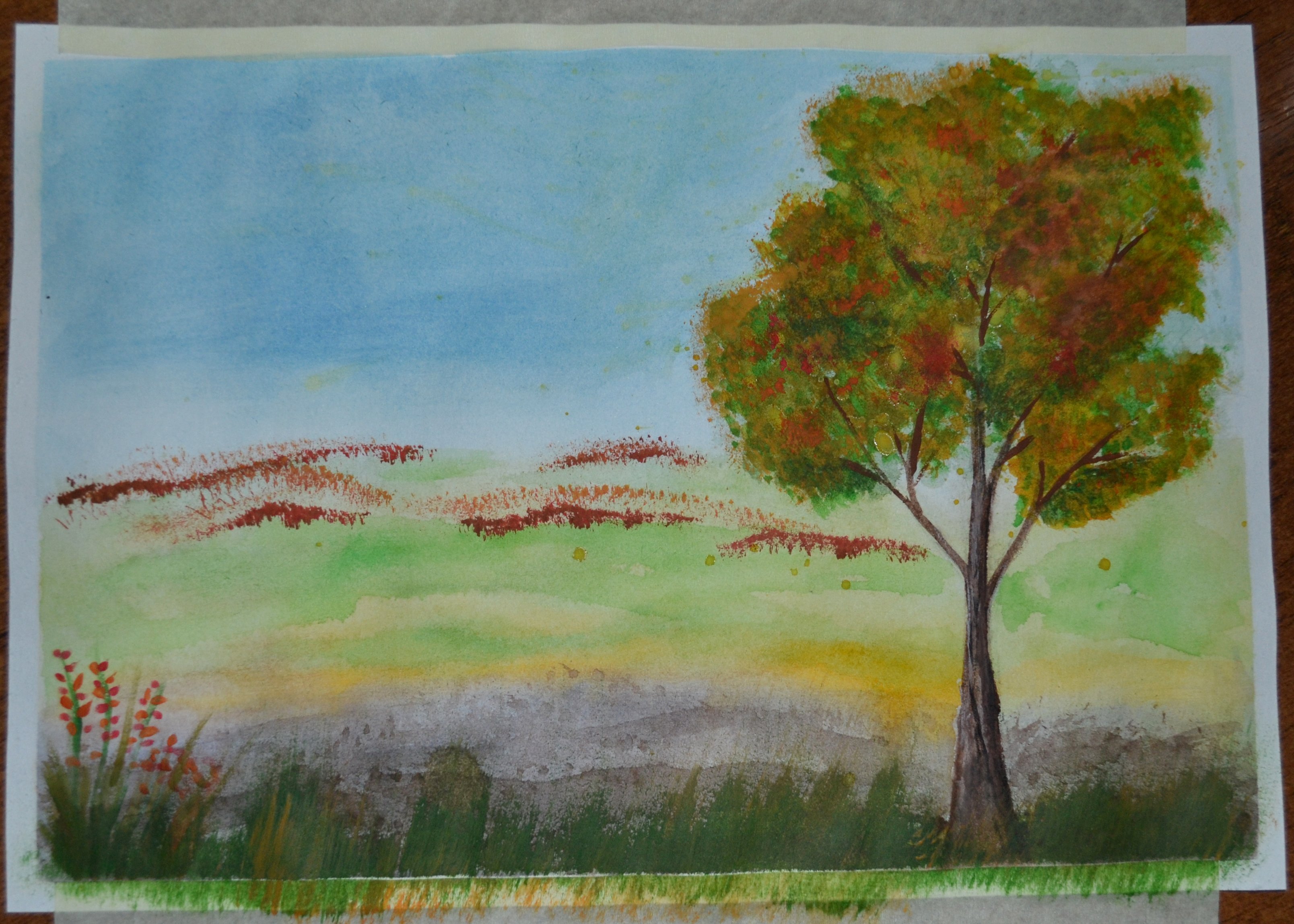 Рисунок осень красками поэтапно