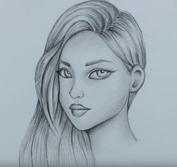 ![Лицо девушки рисунок карандашом]()