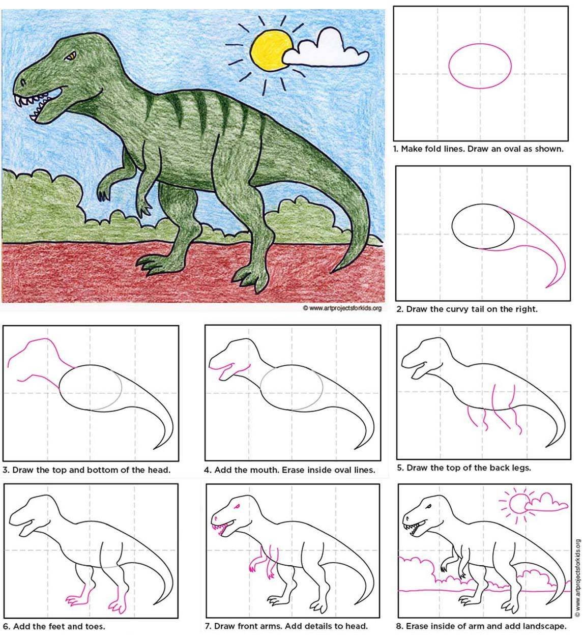 ![Динозавр пошаговое рисование]()