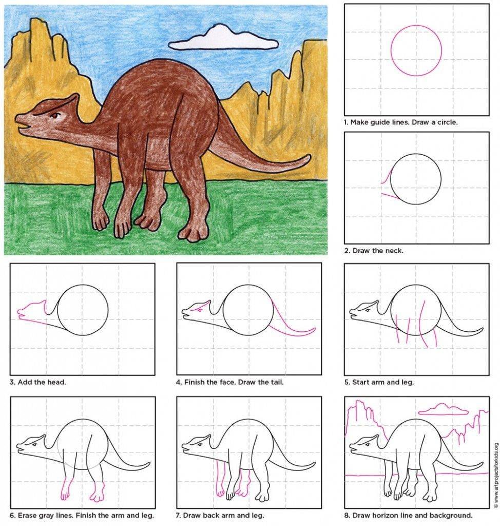Как нарисовать динозавра поэтапно