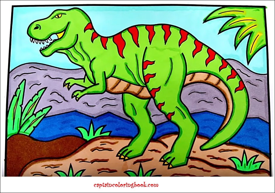 Рисунок динозавра цветными карандашами