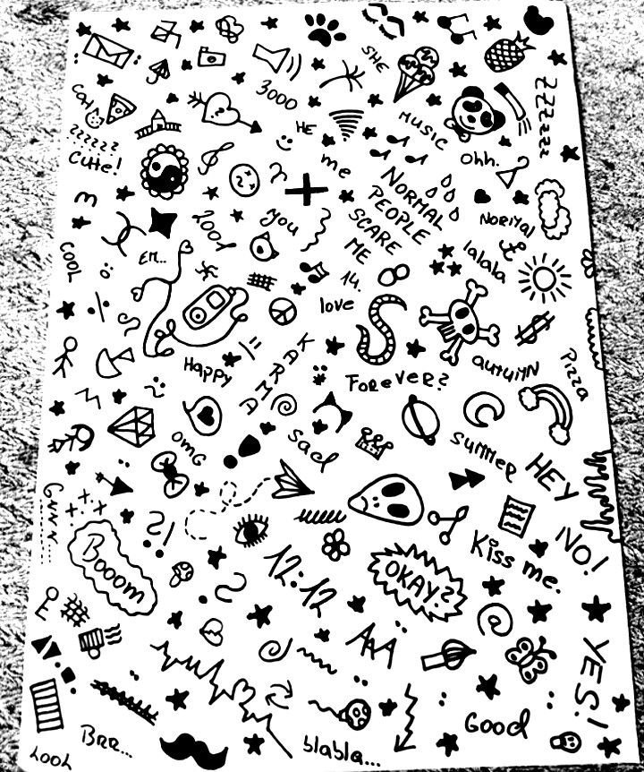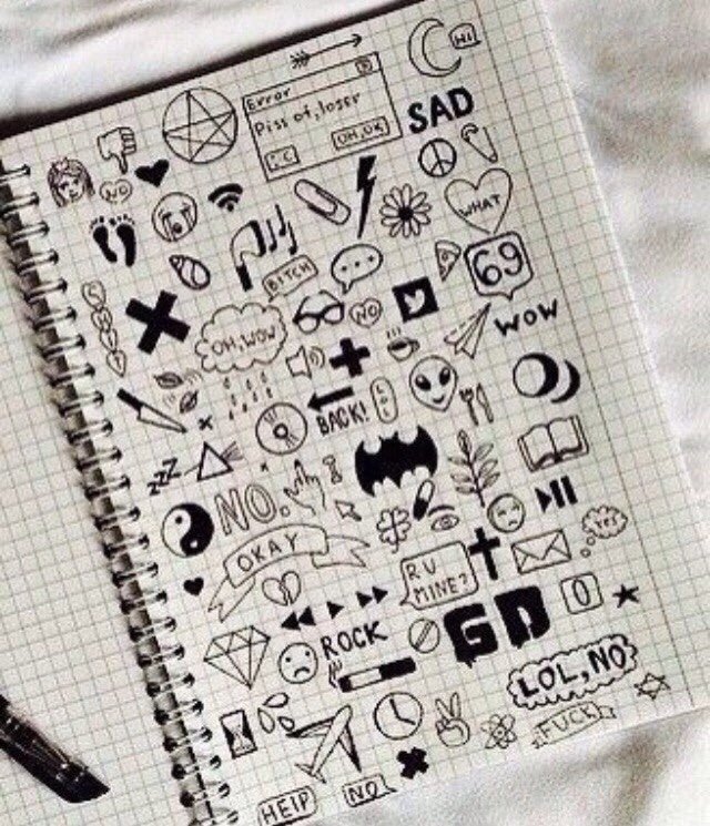 ![Маленькие рисунки ручкой в тетради]()