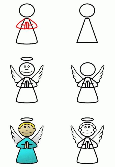 ![Поэтапный рисунок ангела]()