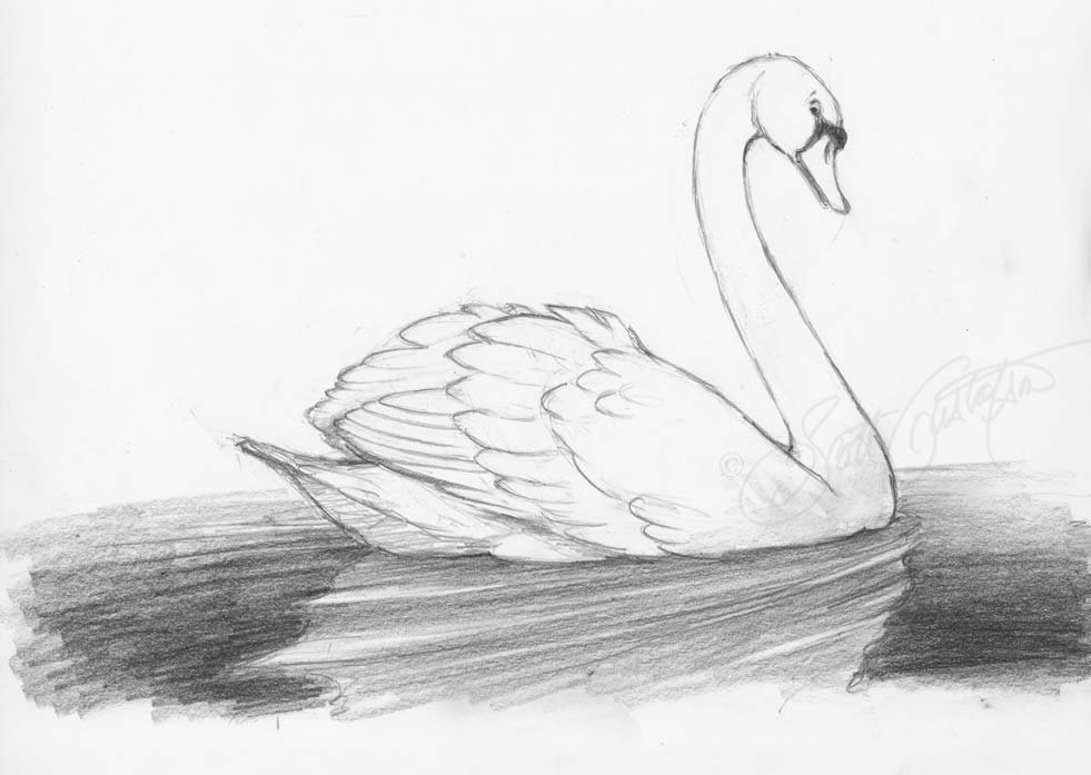 Лебедь карандашом