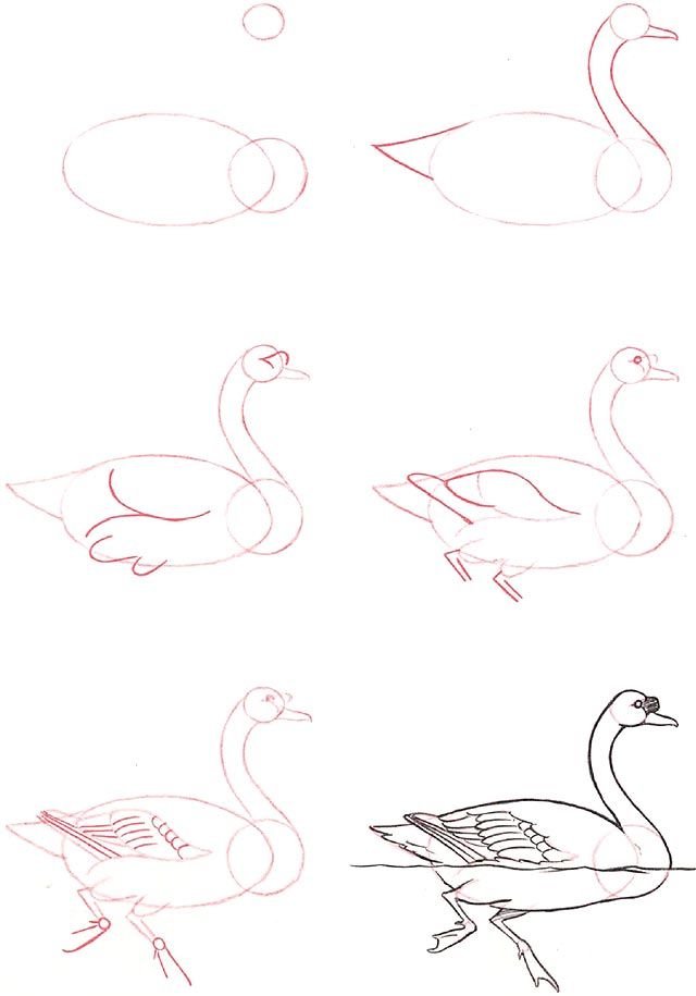 ![Поэтапный рисунок лебедя]()
