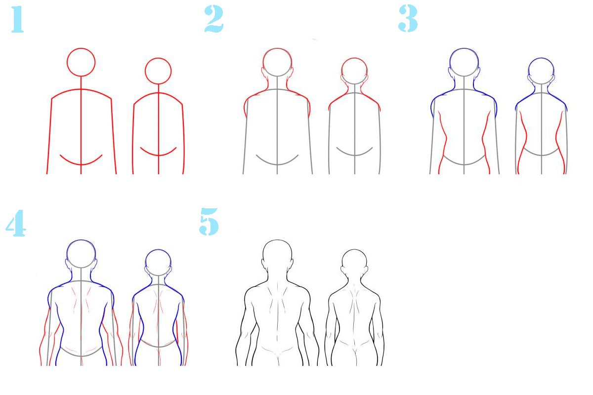![Поэтапное рисование тела]()