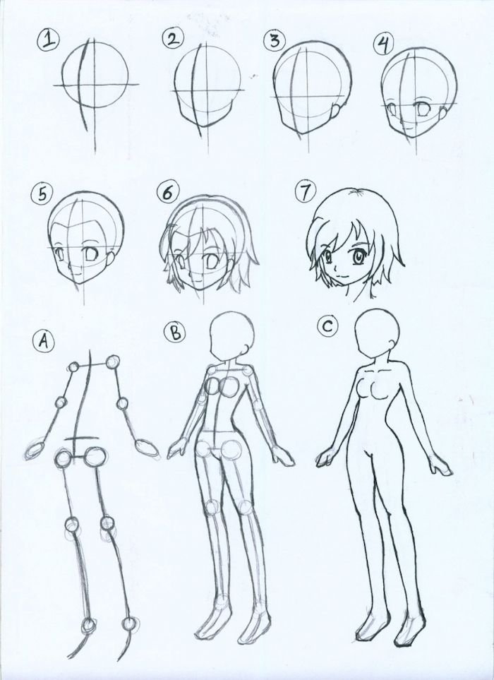 Поэтапные рисунки аниме в полный рост