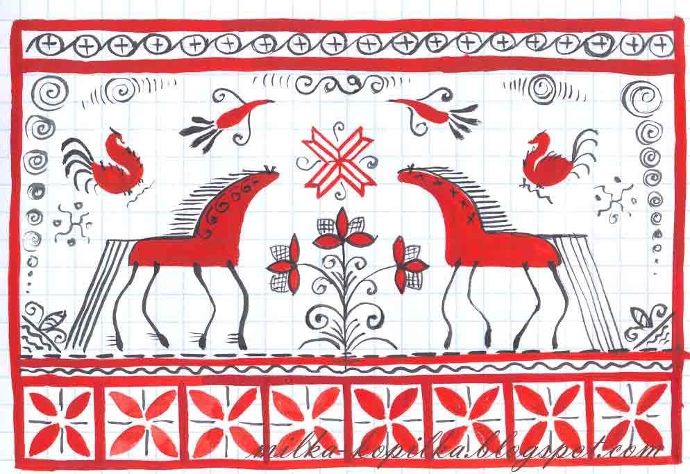 ![Конь в народной вышивке]()
