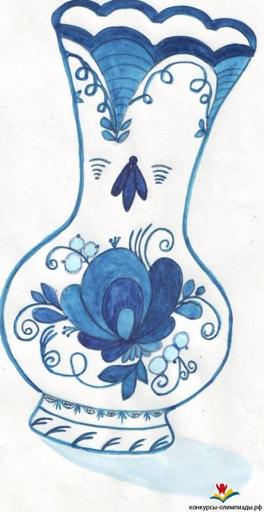 ![Квасник Гжель рисунок для детей]()