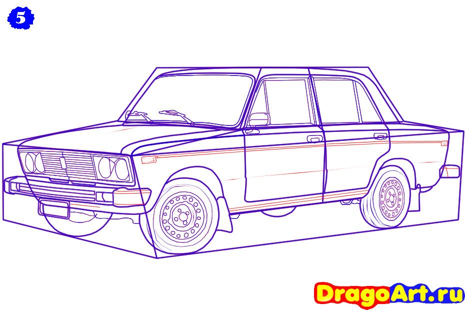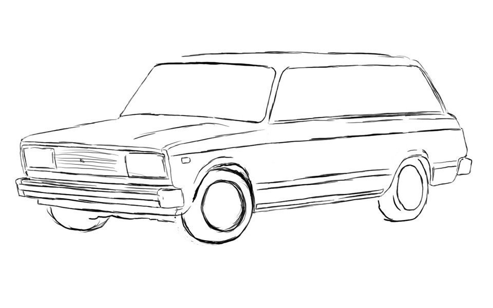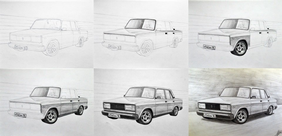 Рисунки карандашом машины ВАЗ 2106 поэтапно