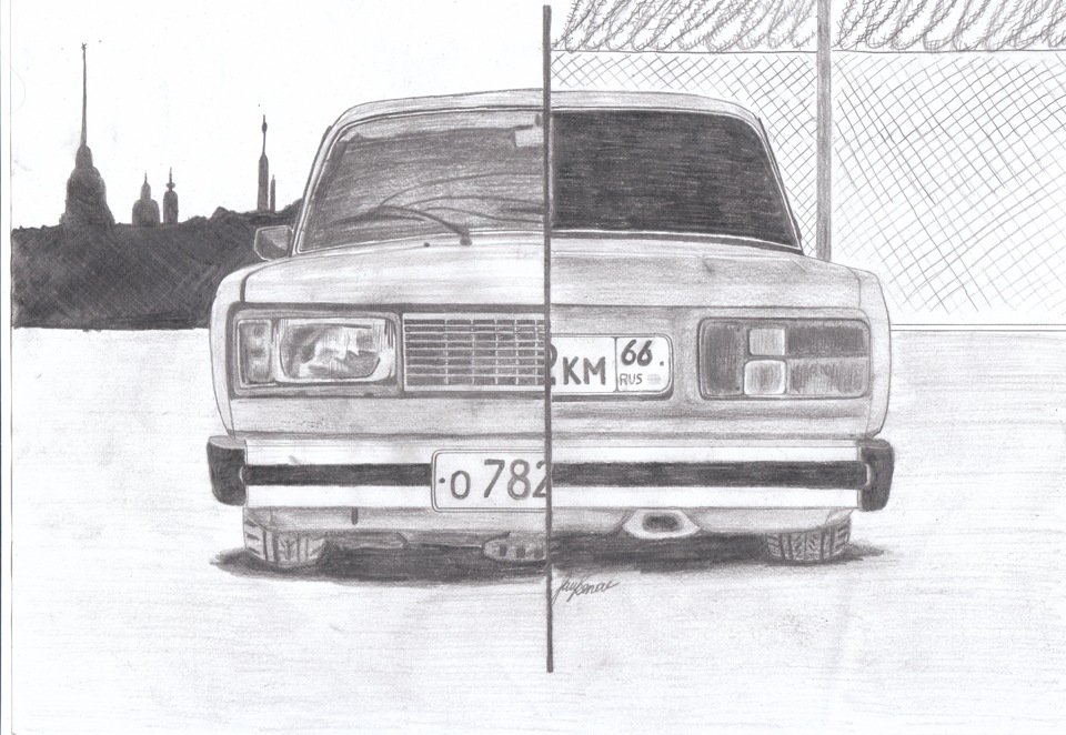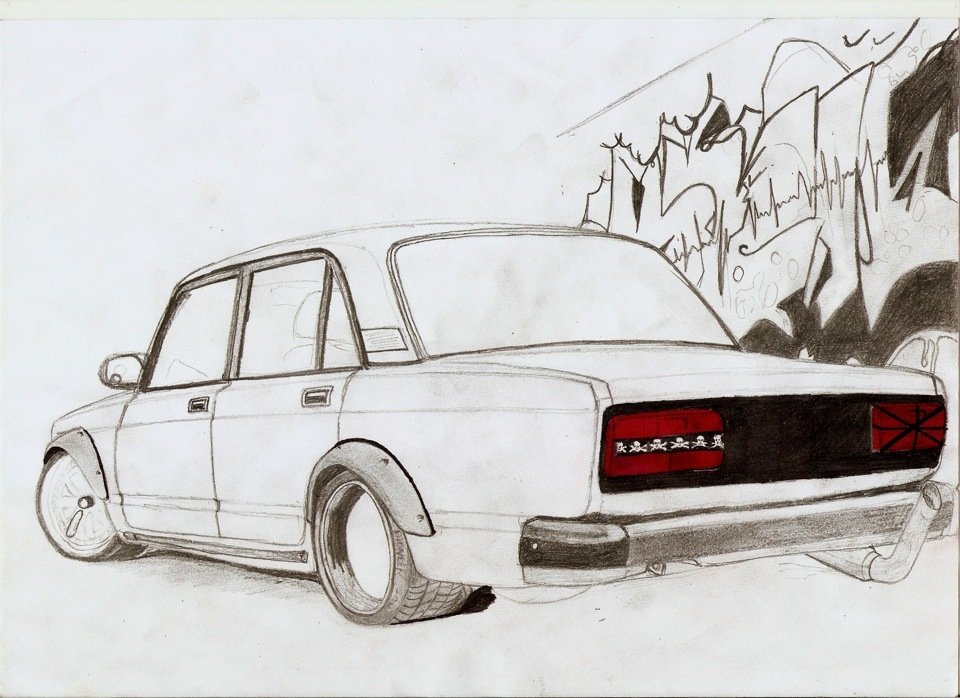 ![ВАЗ 2107 рисунок карандашом сбоку]()