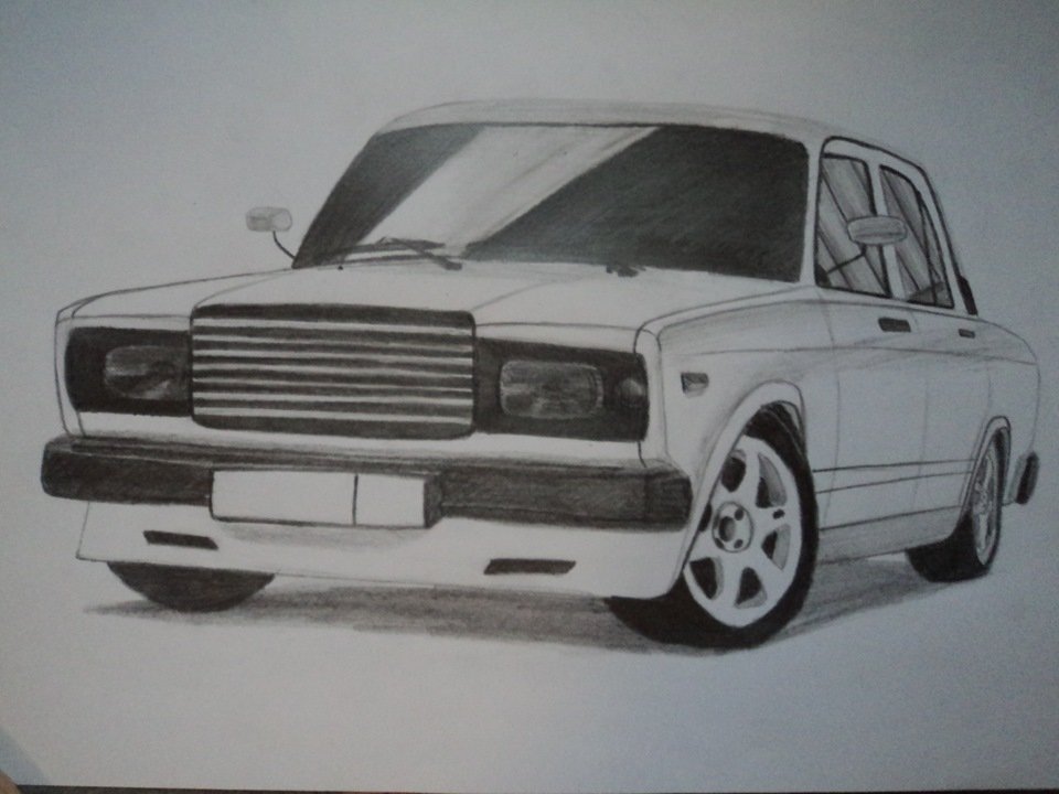 Рисунок ВАЗ 2107 карандашом с переди