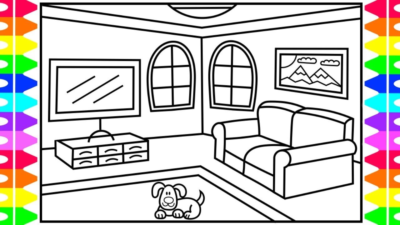 ![Гостиная раскраска для детей]()
