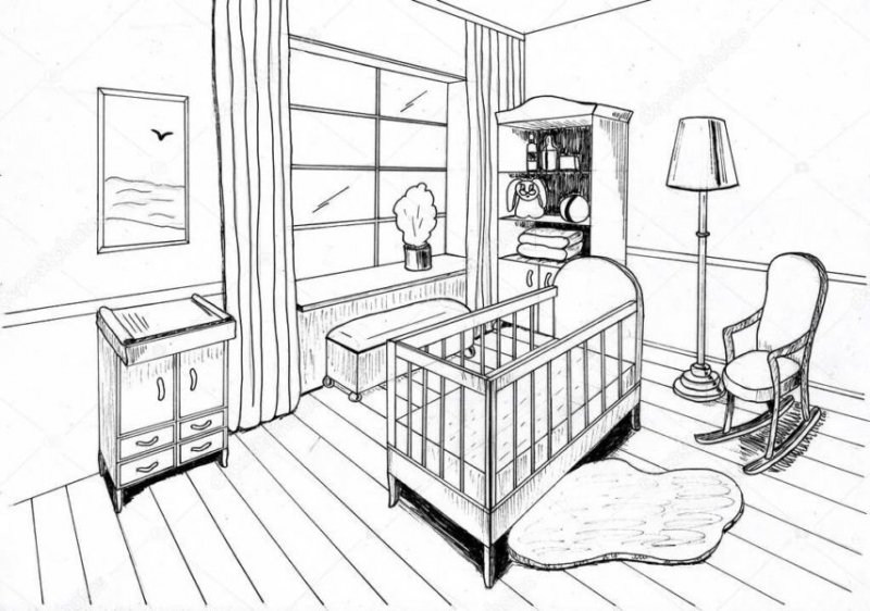 Рисунок комнаты для срисовки
