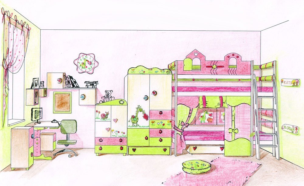 ![Рисование интерьера комнаты для детей]()