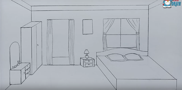 ![Спальня карандашом для срисовки]()