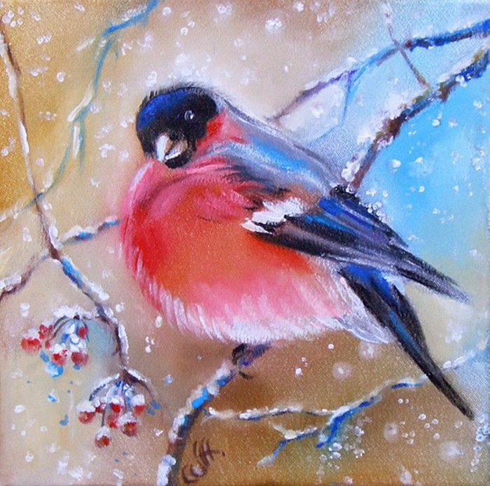 ![Снегирь живопись Мария Павлова]()