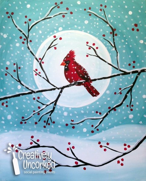 ![Зимний пейзаж акриловыми красками]()