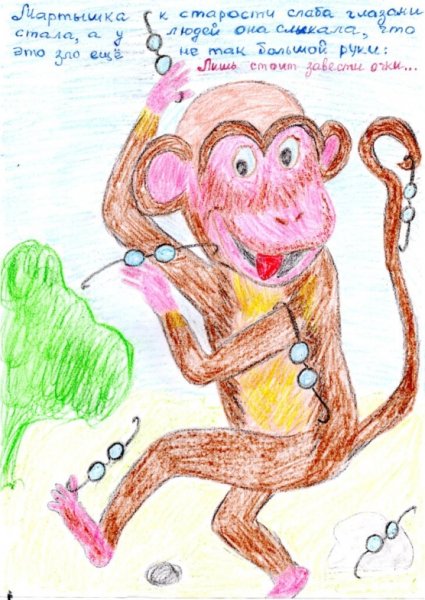 Рисунок к басне Крылова мартышка и очки 3 класс