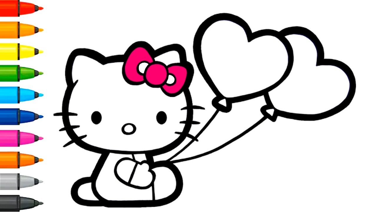 ![Раскраска Хелло Китти с сердечком]()