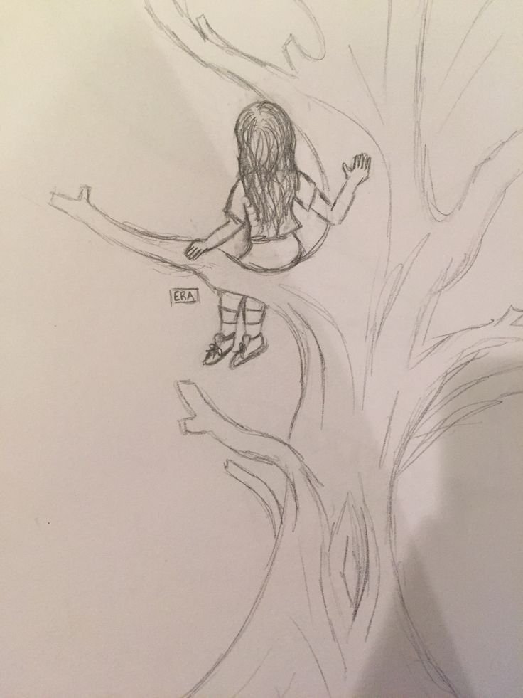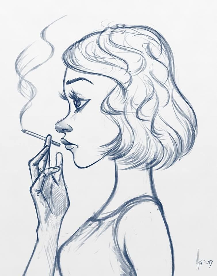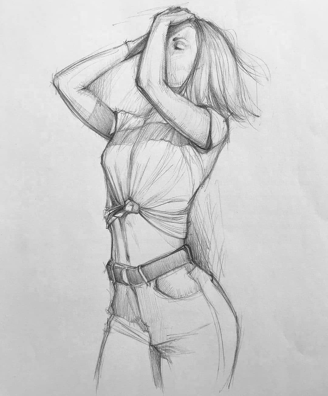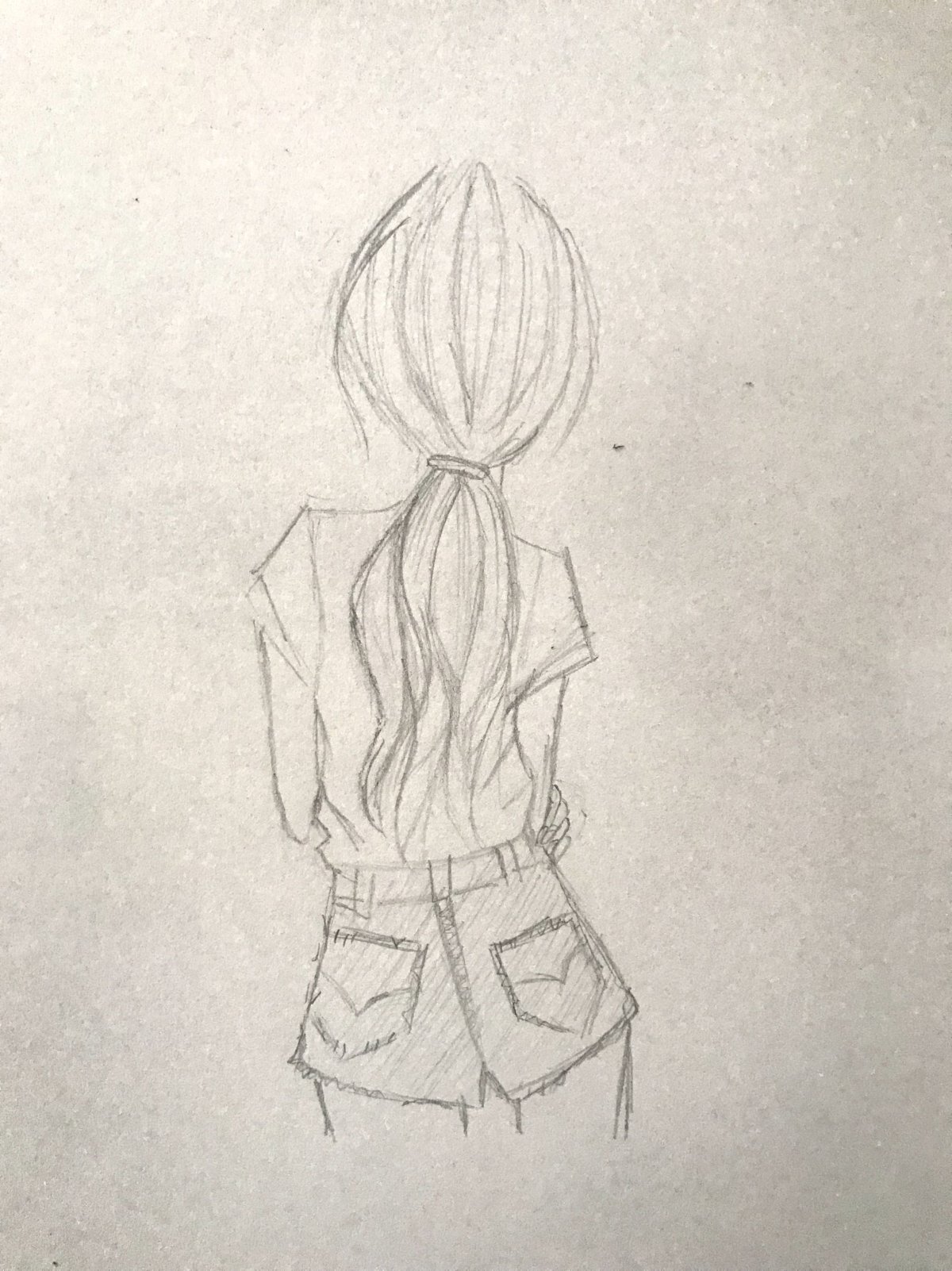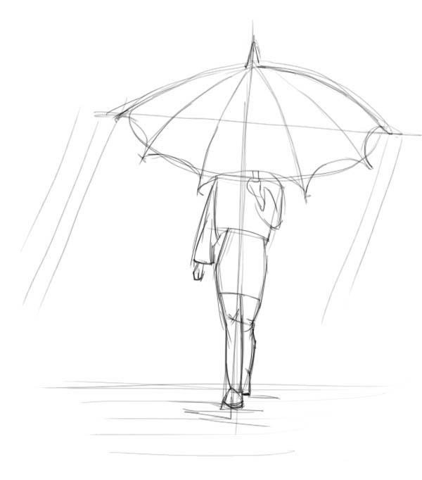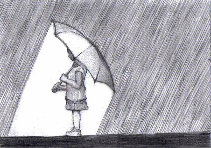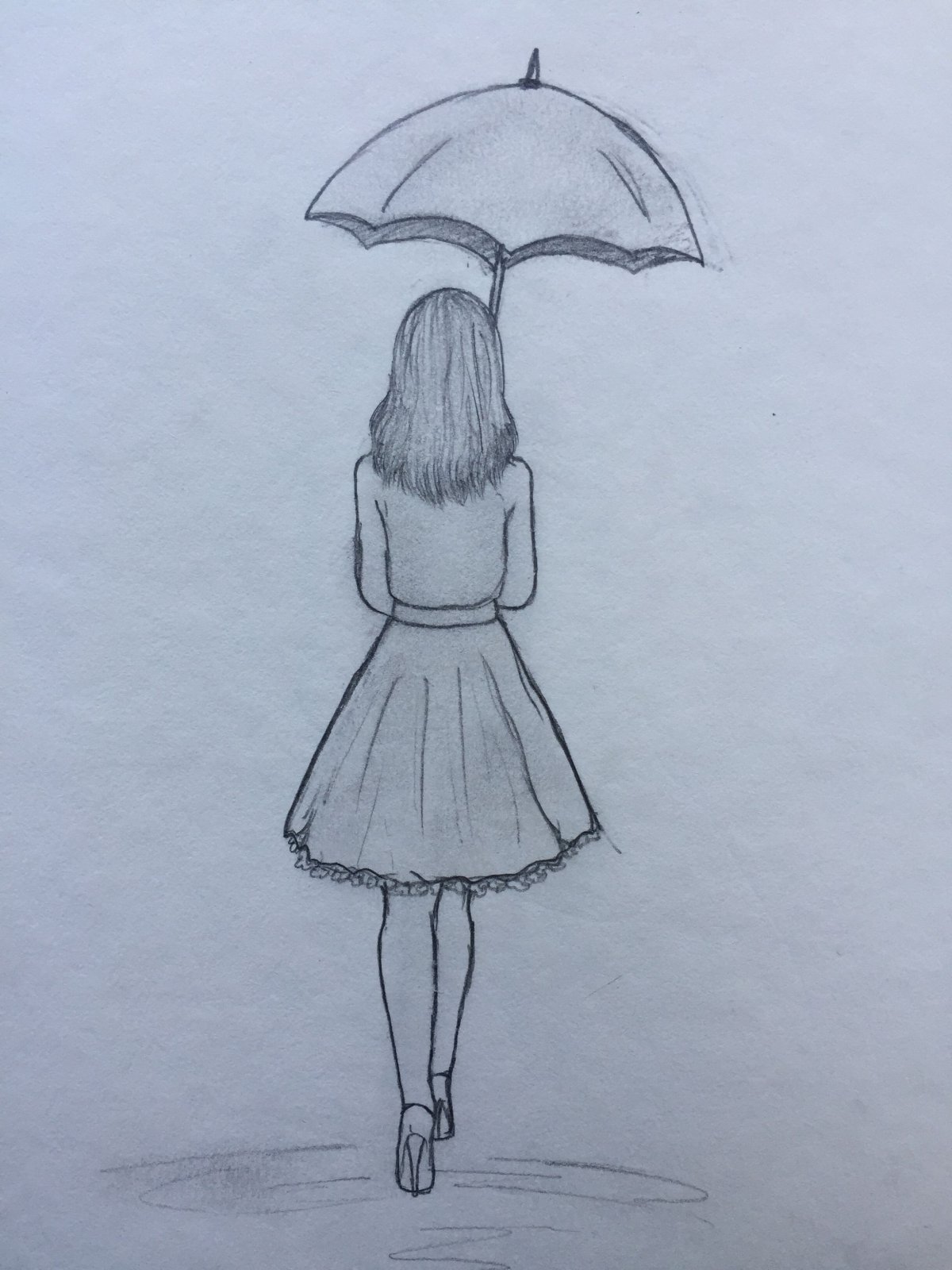 Девушка в платье весной под дождем рисунок карандашом легкий