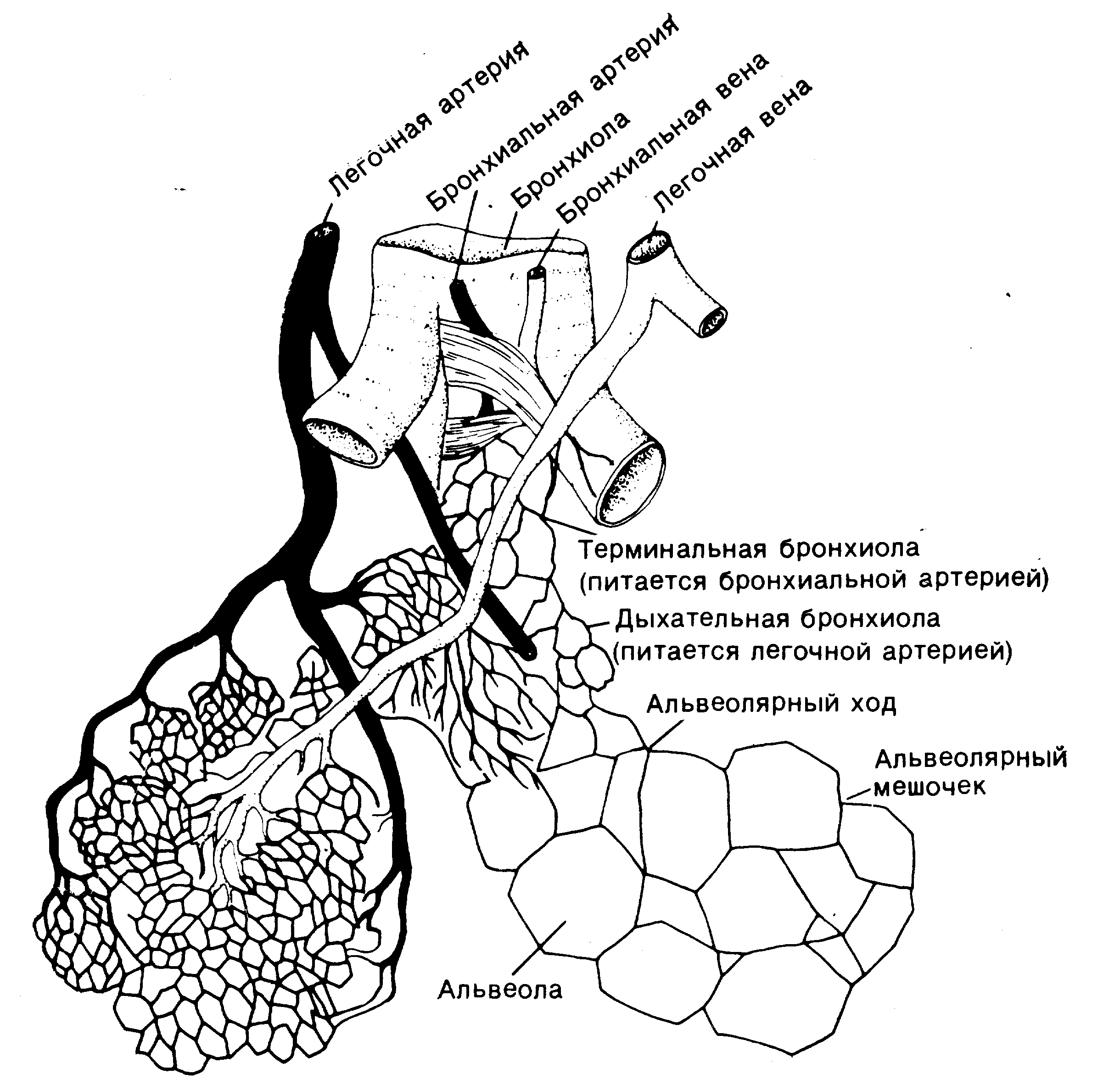 ![Схема структурно функциональной единицы легких ацинуса]()