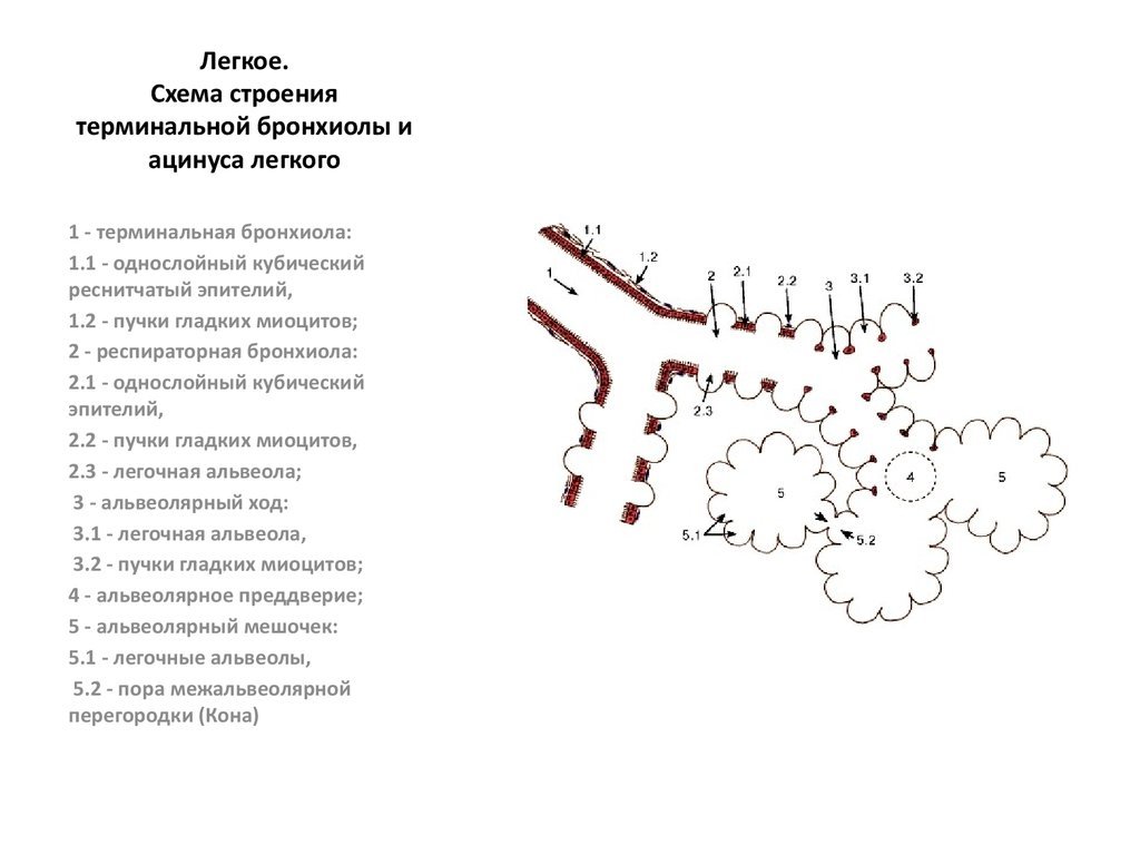 Схема структурно функциональной единицы легких ацинуса