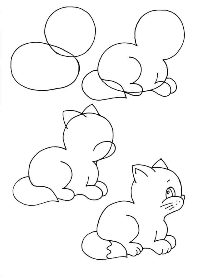 Поэтапное рисование кошки для дошкольников