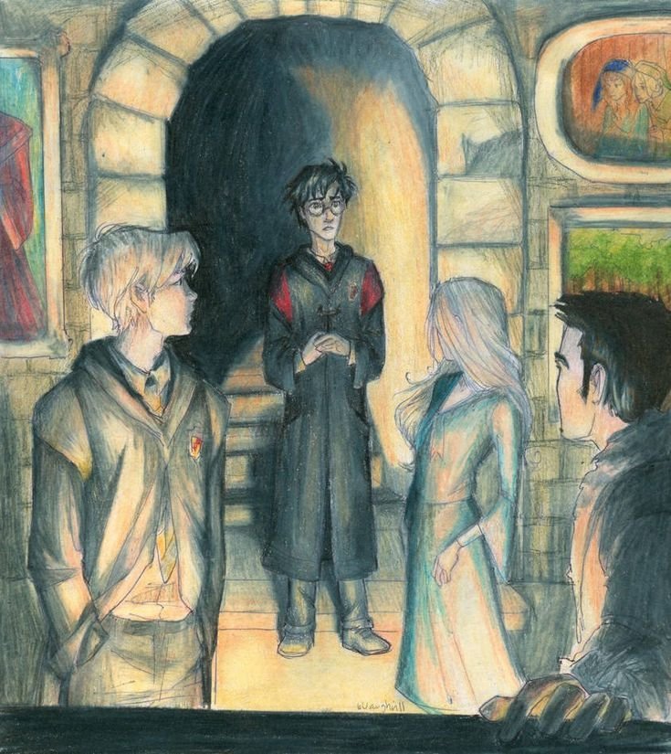 ![Срисовки Гарри Поттера Рона и Гермионы]()