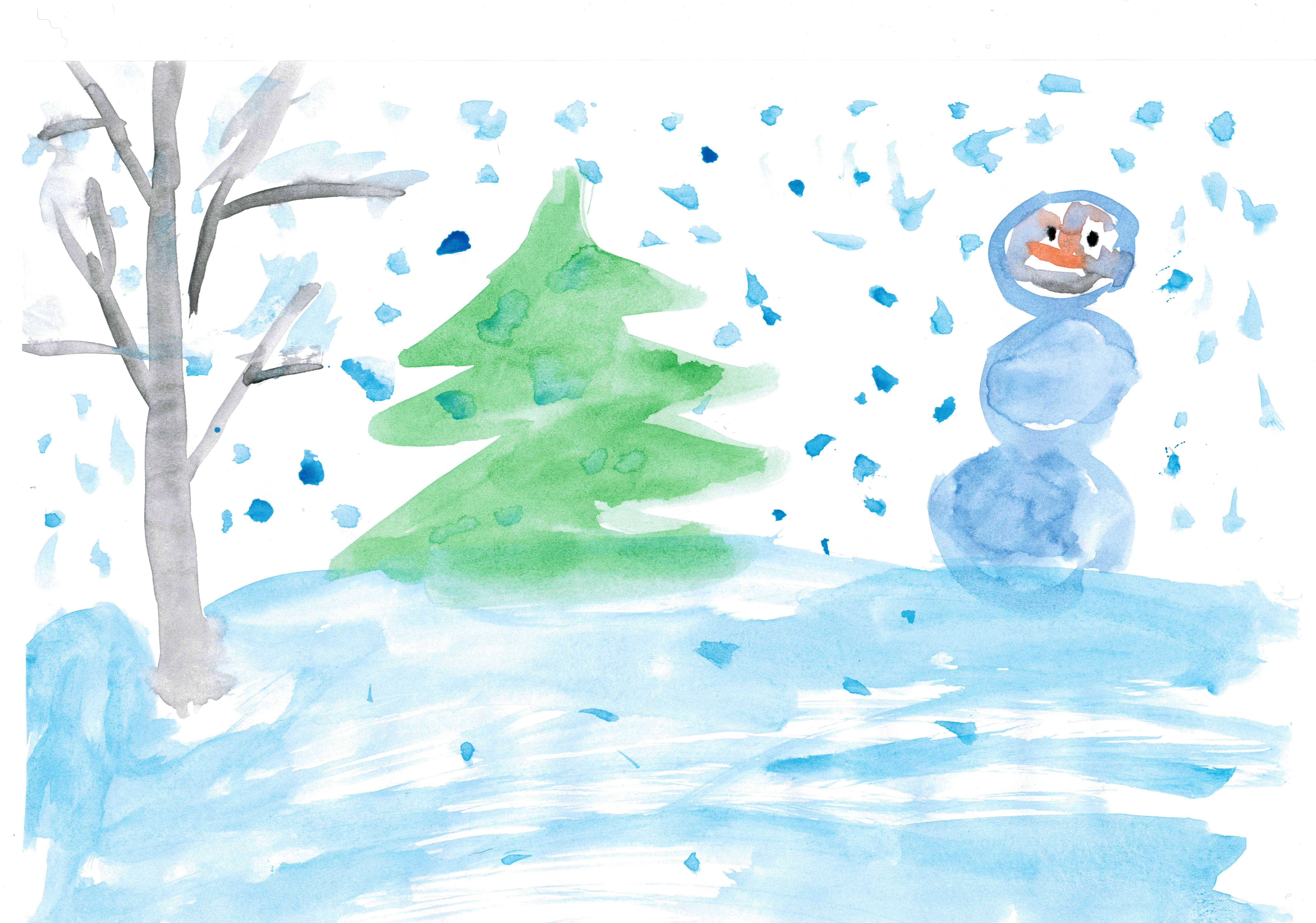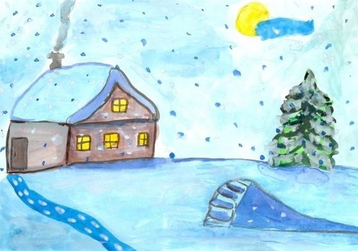 ![Детский рисунок зима]()