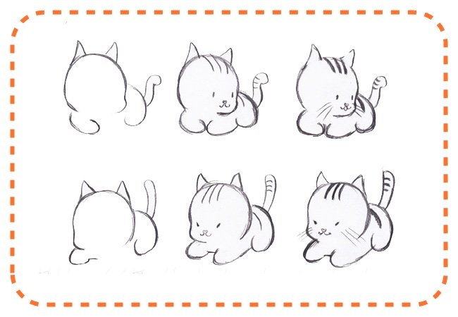![Этапы рисования кошки]()