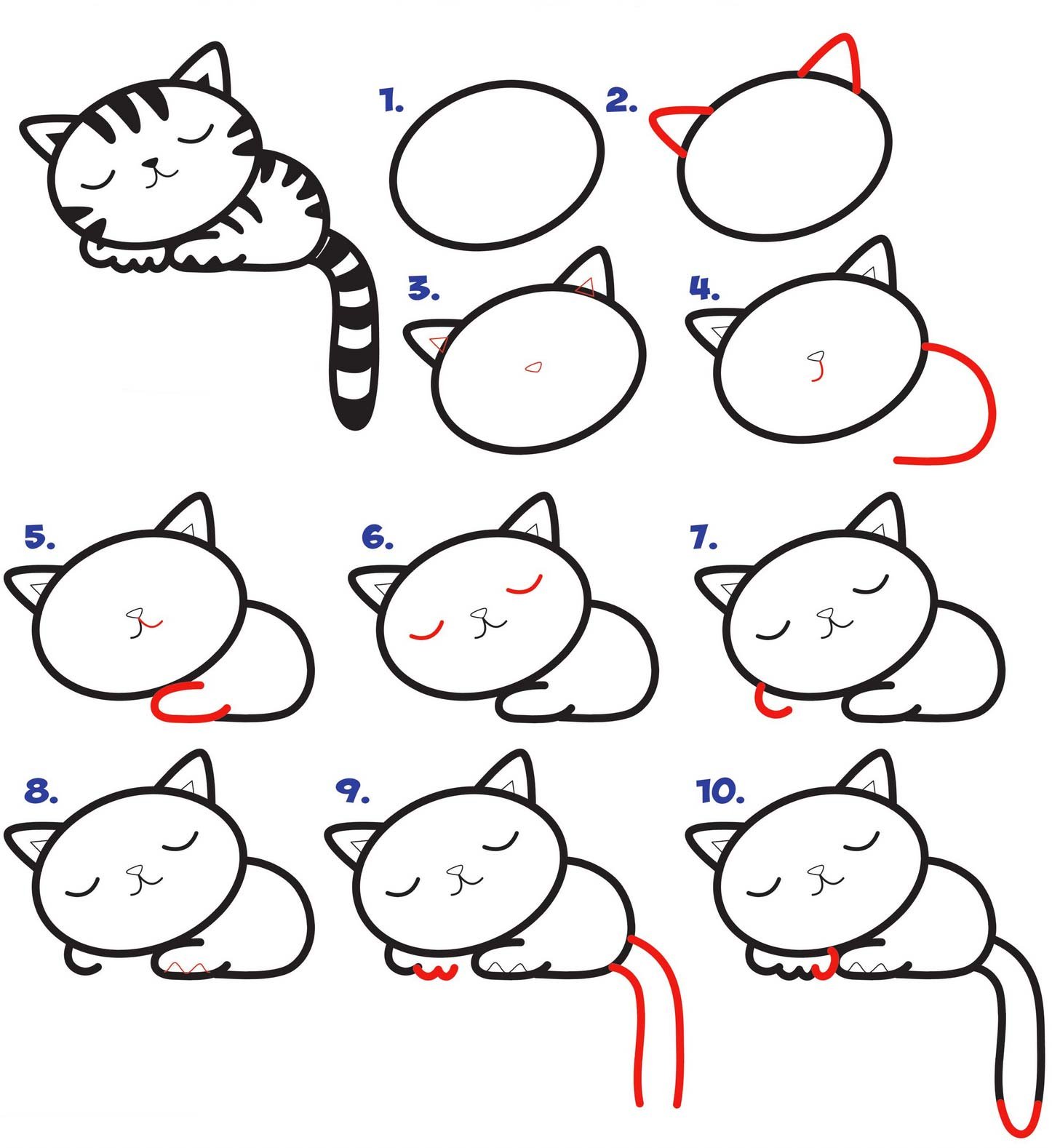 ![Поэтапный рисунок кошки]()