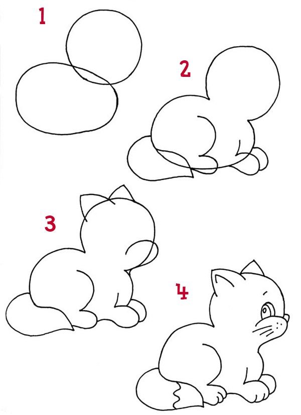 Схема рисования котенка для детей